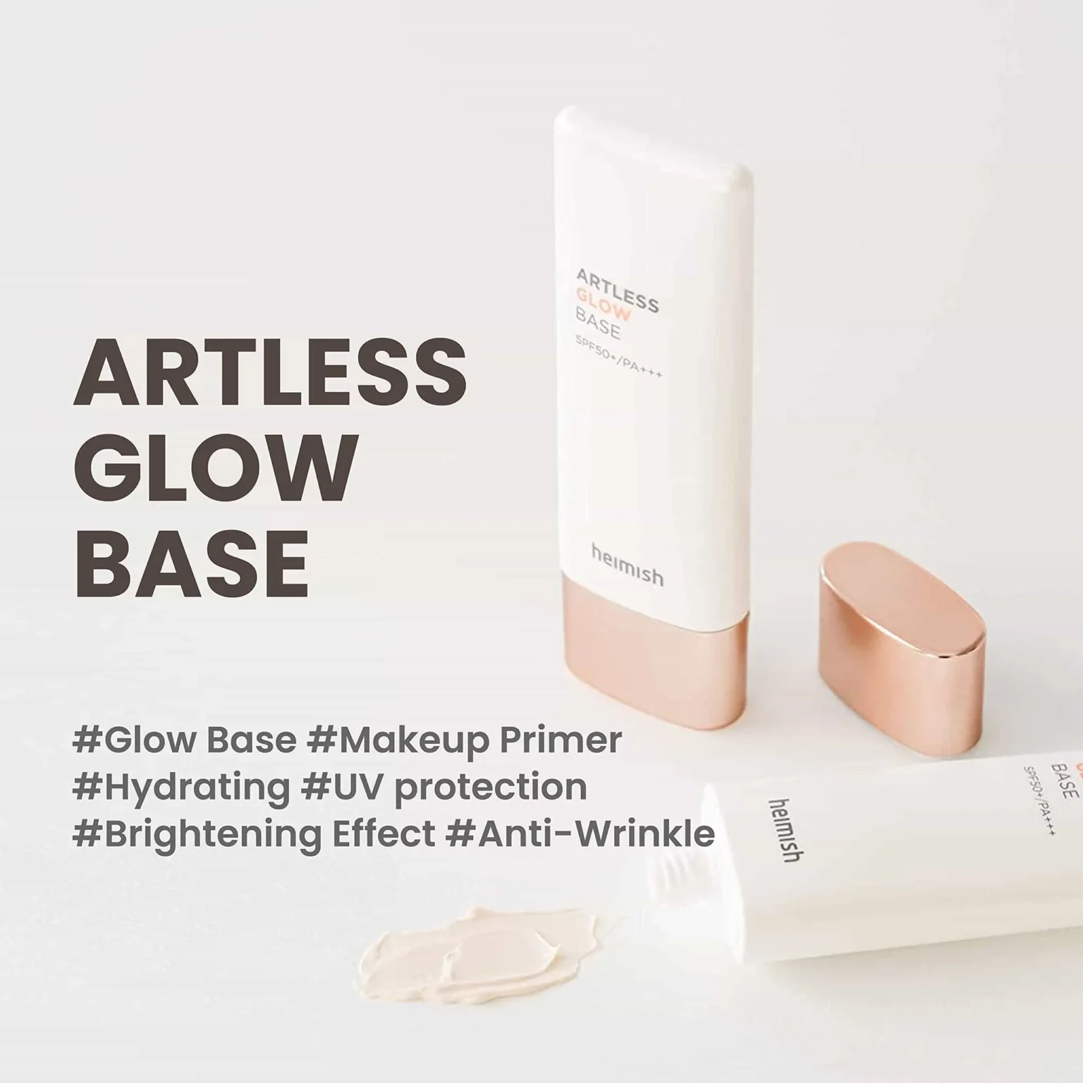 • HEIMISH Artless Glow Base has a weightless and moisturizing texture that smoothly glides onto your skin, providing a smooth and even application for a soft and radiant glow throughout the day.